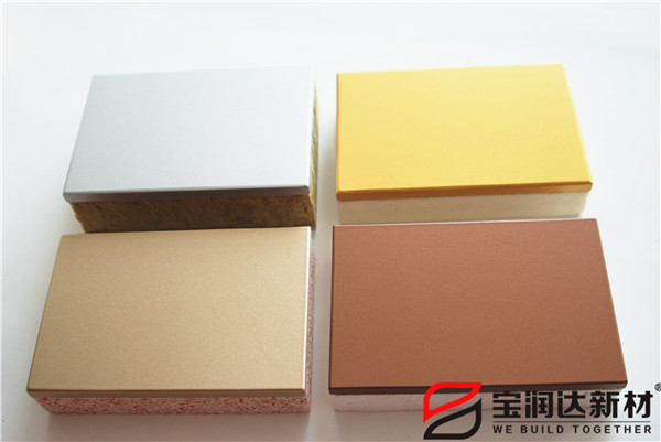 寶潤達一體板飾面層采用真石漆,多彩漆,水包水,水包砂,乳膠漆,實色/金屬氟碳超3000種顏色定制,可根據(jù)石材定做樣品